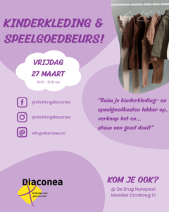 Kinderkleding & speelgoedbeurs voor Diaconea Klik hier voor de link naar het Microsoft opgave formulier om items te verkopen. Vragen of meer willen weten over onze stichting? Klik hier om het contactformulier in te vullen